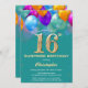 Surprise 16th Birthday Teal and Gold Colourful Balloons and Confetti Invitation. For further customisation, please click the "Customise it" button and use our design tool to modify this template.