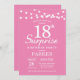 Surprise 18th Birthday Invitation with String Lights. Pink Background. Women Female Lady Elegant Modern bday. 13th 15th 16th 18th 20th 21st 30th 40th 50th 60th 70th 80th 90th 100th, Any age. For further customisation, please click the "Customise it" button and use our design tool to modify this template.