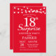 Surprise 18th Birthday Invitation with String Lights. Red Background. 13th 15th 16th 18th 20th 21st 30th 40th 50th 60th 70th 80th 90th 100th, Any age. For further customisation, please click the "Customise it" button and use our design tool to modify this template.
