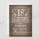 Surprise 18th Birthday Invitation Rustic Wood Background. 15th 16th 18th 20th 21st 30th 40th 50th 60th 70th 80th 90th 100th, Any age. Adult Birthday. Man Male Birthday Party. For further customisation, please click the "Customise it" button and use our design tool to modify this template.
