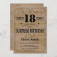 Surprise 18th Birthday Invitation. Typography. Cheers to 18 years. Rustic Wood Background. Adult Birthday. Male Men or Women Birthday. Kids Boy or Girl Lady Teen Teenage Bday Invite. 13th 15th 16th 18th 20th 21st 30th 40th 50th 60th 70th 80th 90th 100th. Any Age. For further customisation, please click the "Customise it" button and use our design tool to modify this template.