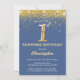 Surprise 1st Birthday Blue and Gold Glitter Invitation