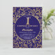 Surprise 1st Birthday Navy Blue and Gold Floral Invitation