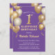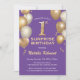 Surprise 1st Birthday Purple and Gold Balloons Invitation