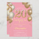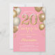 Surprise 20th Birthday Pink and Gold Balloons Invitation