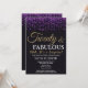 Surprise 20th Birthday invitation. Twenty and Fabulous. Black Purple and Gold Glitter. Adult Birthday Party. For Men or Women. For further customisation, please click the "Customise it" button and use our design tool to modify this template.