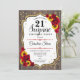 Feminine rustic black, white, red design with faux glitter gold. Features wood pattern, red roses, sunflowers, script font and confetti. Perfect for an elegant birthday party. Can be personalized to show any age. Message me if you need further customization.