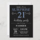 Surprise 21st Birthday Invitation with Black and Blue Glitter Background. Chalkboard. Adult Birthday. Men or Women Bday Invite. Any age. For further customisation, please click the "Customise it" button and use our design tool to modify this template.