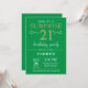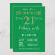 Surprise 21st Birthday Invitation with Green and Gold Glitter Background. Adult Birthday. Men or Women Bday Invite. Any age. For further customisation, please click the "Customise it" button and use our design tool to modify this template.