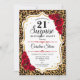 Feminine red, white design with faux glitter gold. Features animal leopard cheetah pattern, red roses, script font and confetti. Perfect for an elegant birthday party. Can be personalized to show any age. Message me if you need further customization.