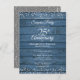 Featuring delicate silver love hearts confetti on a blue rustic wood panels background. Personalise with your special twenty-five years silver anniversary surprise party information in chic lettering. Designed by Thisisnotme©