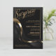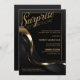 Organise your surprise milestone 30th birthday celebration in style with our chic and sophisticated black party invitation. With its customisable text, you can personalise the invitation. This invitation features a fine gold frame that encloses the text, adding a touch of luxury to your special occasion. The gold and grey abstract wavy ribbon design adds a modern and stylish look to the invitation and creates a sense of flow and movement. The overall design is understated yet beautiful, making it perfect for those who prefer a more refined aesthetic.