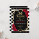 Feminine black, white, red design with faux glitter gold. Features black and white stripes, red roses, script font and confetti. Perfect for an elegant birthday party. Can be personalized to show any age. Message me if you need further customization.