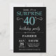 Surprise 40th Birthday Invitation with Black and Teal Glitter Background. Chalkboard. Adult Birthday. Men or Women Bday Invite. Any age. For further customisation, please click the "Customise it" button and use our design tool to modify this template.