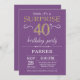 Surprise 40th Birthday Invitation with Purple and Gold Glitter Background. Adult Birthday. Men or Women Bday Invite. Any age. For further customisation, please click the "Customise it" button and use our design tool to modify this template.