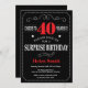 Surprise 40th Birthday Invitation Red and Black Typography. Chalkboard. Black and White Background. Adult Birthday. Male Men or Women Birthday. Kids Boy or Girl Lady Teen Teenage Bday Invite. 13th 15th 16th 18th 20th 21st 30th 40th 50th 60th 70th 80th 90th 100th. Any Age. For further customisation, please click the "Customise it" button and use our design tool to modify this template.