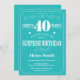 Surprise 40th Birthday Invitation Teal and White Typography. Teal Background. Adult Birthday. Male Men or Women Birthday. Kids Boy or Girl Lady Teen Teenage Bday Invite. 13th 15th 16th 18th 20th 21st 30th 40th 50th 60th 70th 80th 90th 100th. Any Age. For further customisation, please click the "Customise it" button and use our design tool to modify this template.