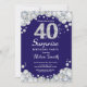 Surprise 40th Birthday Navy Blue Silver Diamond Invitation
