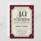 Surprise 40th Birthday Party - Black Red Stripes Invitation