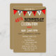 This surprise 40th birthday party invitation is a vintage typography design in red, black and white on a cardboard brown background. Surprise appears along the top and red and white flags hold the word happy. Then you will find "40th Birthday Celebration" in a typography which has a vintage feel. This is a great invite to a 40th surprise birthday. Copyright henishouseofpaper