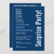 This modern design in navy blue and white is an elegant way to invite your guests to a SURPRISE 50th birthday party. All text is totally customisable. You can change the background colour or the text colour for a different look. Although this design is featured on a basic paper, I recommend the linen finish paper, which gives your invitation a more elegant touch, or the premium ice hued metallic paper, which will give your invitations a festive shimmer and shine.