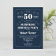 Elegant retro navy blue and white design. Cheers to 50 years! Can be customized to show any age.