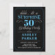Simple classy design in black, light blue and white. Features elegant script font. Surprise bday celebration for man or woman. Can be customized into any age!