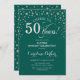 Elegant design in emerald green and faux glitter silver. Features script font and diamonds confetti. Cheers to 50 Years! Message me if you need further customization.
