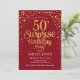 Surprise 50th Birthday Party - Red & Gold Invitation
