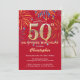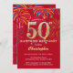 Surprise 50th Birthday Red & Gold Rainbow Firework Invitation