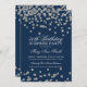 Elegant Surprise 50th Birthday Party invitation design with Silver Glitter Confetti motif Navy Blue, custom name and date and additional text. Easy to use and easy to personalise.