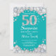 Surprise 50th Birthday Teal and Silver Diamond Invitation