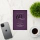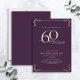 This beautiful invitation features hand lettered calligraphy artfully presenting 'sixty' in luxurious hand lettering against a purple background, adorned with delicate swirls in the corners top and bottom in real gold foil, along with the name and the number 60. This image will have all your guests excitedly anticipating your fabulous sixtieth festivities!