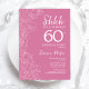 Floral Pink Surprise 60th Birthday Invitation. Minimalist modern feminine design features botanical accents and typography script font. Simple floral invite card perfect for a stylish female surprise bday celebration.