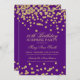 Elegant Surprise 60th Birthday Party invitation design with Gold Glitter Confetti motif Purple, custom name and date and additional text. Easy to use and easy to personalise.