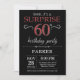 Surprise 60th Birthday Invitation with Black and Red Glitter Background. Chalkboard. Adult Birthday. Men or Women Bday Invite. Any age. For further customisation, please click the "Customise it" button and use our design tool to modify this template.