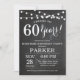 Surprise 60th Birthday Invitation Chalkboard Background with String Lights. Black and White. 13th 15th 16th 18th 20th 21st 30th 40th 50th 60th 70th 80th 90th 100th, Any age. Adult Birthday. Woman or Man Male Birthday Party. For further customisation, please click the "Customise it" button and use our design tool to modify this template.