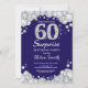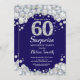 Surprise 60th Birthday Navy Blue Silver Diamond Invitation