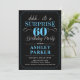 Simple classy design in black, light blue and white. Features elegant script font. Surprise bday celebration for man or woman. Can be customized into any age!