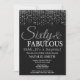 Surprise 60th Birthday invitation. Sixty and Fabulous. Black and Silver. Silver Glitter. Adult Birthday Party. For Men or Women. For further customisation, please click the "Customise it" button and use our design tool to modify this template.