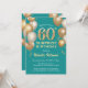 Surprise 60th Birthday Teal and Gold Balloons Invitation