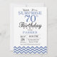Surprise 70th Birthday Invitation with Blue Chevron. Black and White. Adult Birthday. Man or Women Bday Invite. For further customisation, please click the "Customise it" button and use our design tool to modify this template.