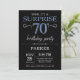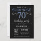Surprise 70th Birthday Invitation with Black and Blue Glitter Background. Chalkboard. Adult Birthday. Men or Women Bday Invite. Any age. For further customisation, please click the "Customise it" button and use our design tool to modify this template.
