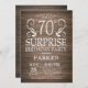 Surprise 70th Birthday Invitation Rustic Wood Background. 15th 16th 18th 20th 21st 30th 40th 50th 60th 70th 80th 90th 100th, Any age. Adult Birthday. Man Male Birthday Party. For further customisation, please click the "Customise it" button and use our design tool to modify this template.