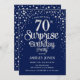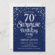 Surprise 70th Birthday Party - Silver & Navy Blue Invitation