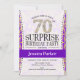 Surprise 70th Birthday Party Invitation for Women or Men. Elegant design in purple, white and faux glitter gold. Features diamond font. Perfect for a stylish milestone adult birthday celebration