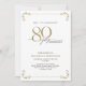 This beautiful invitation features hand lettered calligraphy artfully presenting 'eighty' in luxurious hand lettering against a white background, adorned with delicate gold swirls in the corners top and bottom. This image will have all your guests excitedly anticipating your fabulous eightieth festivities!