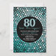 Surprise 80th Birthday Black and Teal Glitter Invitation