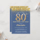 Surprise 80th Birthday Blue and Gold Glitter Invitation