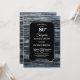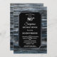 A rustic silver-bordered blue and grey barn wood surprise 80th birthday dinner invitation with the white text highlighted on a black background.